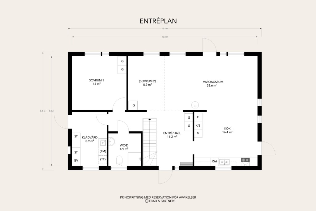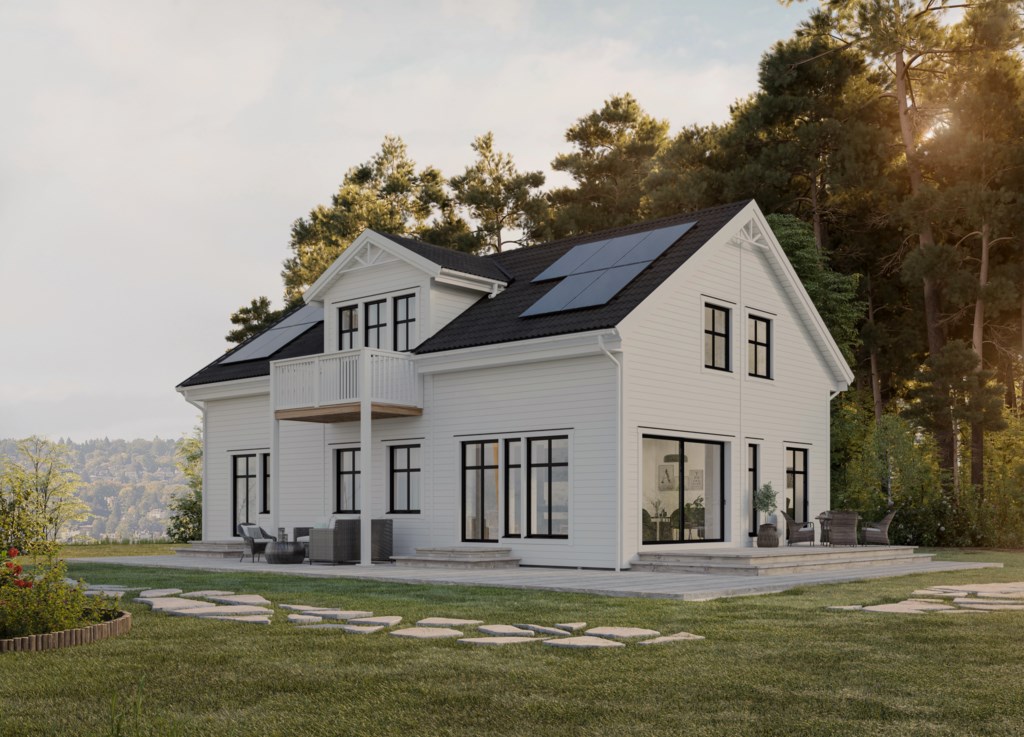 Hallen erbjuder utrymme för garderober och smarta förvaringslösningar. Köket kan utrustas med både köksö och bardel, och med val av fönsterstorlek kan ni själva styra ljusinsläpp och insynsskydd. Planlösningen är flexibel: på nedervåningen kan ni välja mellan ett eller två sovrum eller anpassa ytorna för större sällskapsytor. Totalentreprenad 5 575 000 kr beroende på val av tillval, och i priset ingår solceller på taket – både miljövänligt och kostnadseffektivt. För barn med leklust ger den öppna planlösningen mellan hall, kök och vardagsrum fina möjligheter. Huset har fullhöjd på övervåningen och flexibilitet med upp till fem sovrum. Skön golvvärme och låg energiförbrukning är standard, och alla fönster i aluminium ger låga framtida kostnader. Om ni vill ha uteplats på flera av husets sidor går det enkelt att ordna.